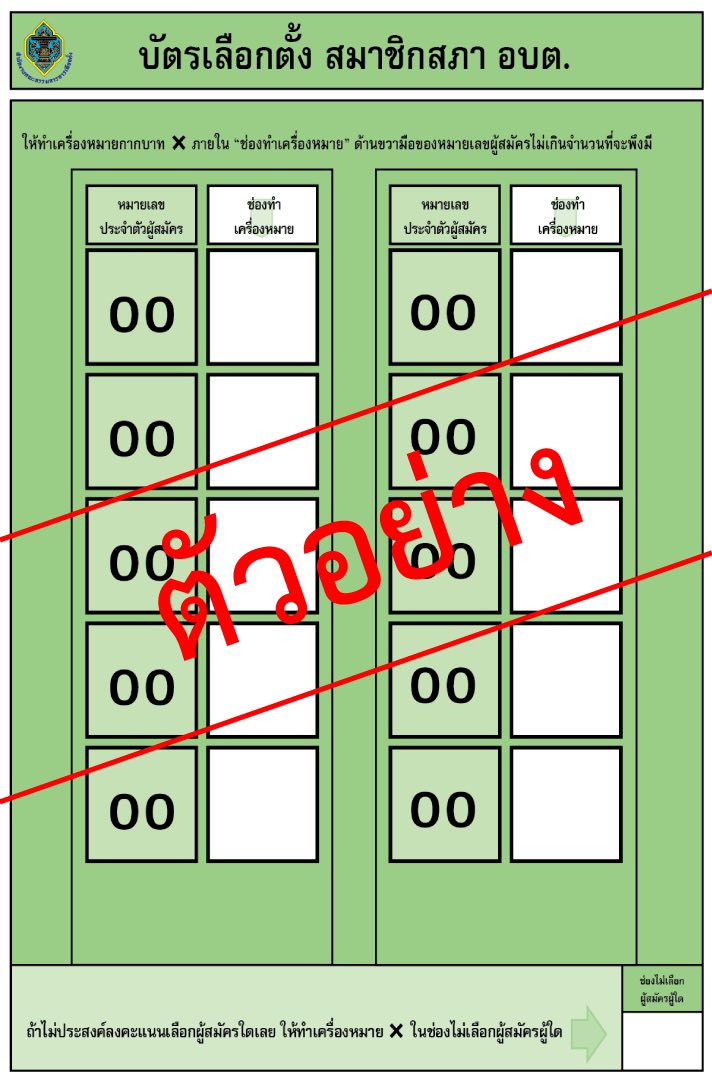 ศูนย์ประสานงานการเลือกตั้งประจำองค์การบริหารส่วนตำบลนาโพธิ์ ประชาสัมพันธ์ สีบัตรเลือกตั้ง